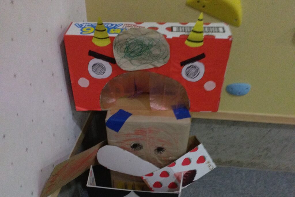 ブログ 伝統行事をたのしむ!季節感を感じる「節分」のひととき doremi-5831 2026年2月12日 「鬼は外!福は内!」手作り鬼さんに全力投球!笑顔あふれる節分! ■まずは「節分ってなぁに?」 イベントの始まりは、学びの時間から。 今回は、児童が事前に一生懸命作ってくれた「節分解説シート」を使ってお話しをしました。 「節分の意味」「なぜ豆を食べるのか」「恵方巻について」など可愛いイラストとともに詳しく書かれたシートにくぎずけ。真剣な表情で話を聞いてくれました。 ■狙いを定めて!「鬼さんピン」でボーリング 続いては、手作りの鬼ピンを使ったボーリング大会です。 ピンには一人ひとりが工夫して描いた個性豊かな鬼たちが並びます。 「全部倒すぞー」と気合十分。 狙いを定めてボールを転がし、ピンが倒れると「やったー」と大歓声があがりました。 ■「鬼は外!」手作り豆で力いっぱい豆まき そしていよいよメインイベントの豆まきです! 目の前に現れたのは、これまた特大の段ボール鬼さん。 豆の代わりに使うのは、茶色の紙を一生懸命丸めて作った「特性お豆」です。 「おこりんぼ鬼」「野菜嫌い鬼」自分たちの中にいるかもしれない鬼をやっつけるために、「鬼は外ー!!」と全力で豆を投げました。 最初は少し圧倒されていた児童も、お友達が頑張る姿を見て最後には夢中で豆を投げていました。 ■おわりに 行事を通して、日本文化に触れるだけではなく、準備から片付けまで、みんなで協力して楽しむことができました。 心の中の鬼を追い払った子供たちの顔は、どこかスッキリとしていて、一回り大きく見えた一日でした。 みんなのところに、たくさんの「福」が訪れますように!