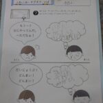 お題【サッカーでゴールをはずしたら・・】 ◎下手だな~・・ちくちく言葉 ◎「大丈夫?」・・ふわふわ言葉で友達の表情やきもちがどう変わるかを考えました。言葉一つで気持ちが変わることを、イラストを見て意見を出してくれました。☺️