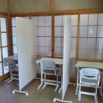 学習・運動・工作部屋と活動で部屋を決め「どこで何をするのか」を視覚的にイラストを部屋にはり場所を明確にしています。学習部屋はパーティションで仕切り集中しやすく、落ち着いて過ごせるようにしています。